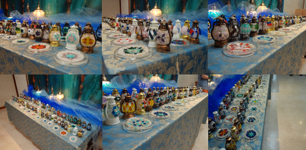 講師の方々の説明とアドバイスを参考に、一人2つのミニ・トルコランプとソーサーを1枚作製しました。