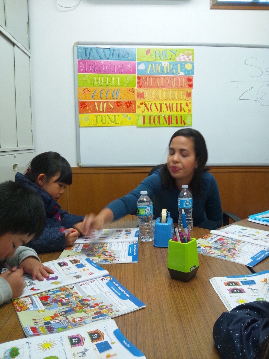 Aクラスは次にテキストブックを使って、SとZで始まる単語の聴き分けや、スペルによる区別を学びました。