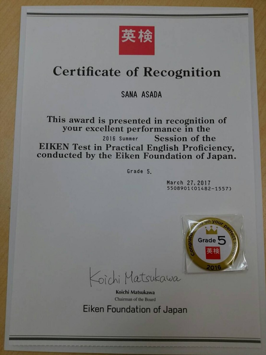 冬に受けた英検の結果が教室に届きました。