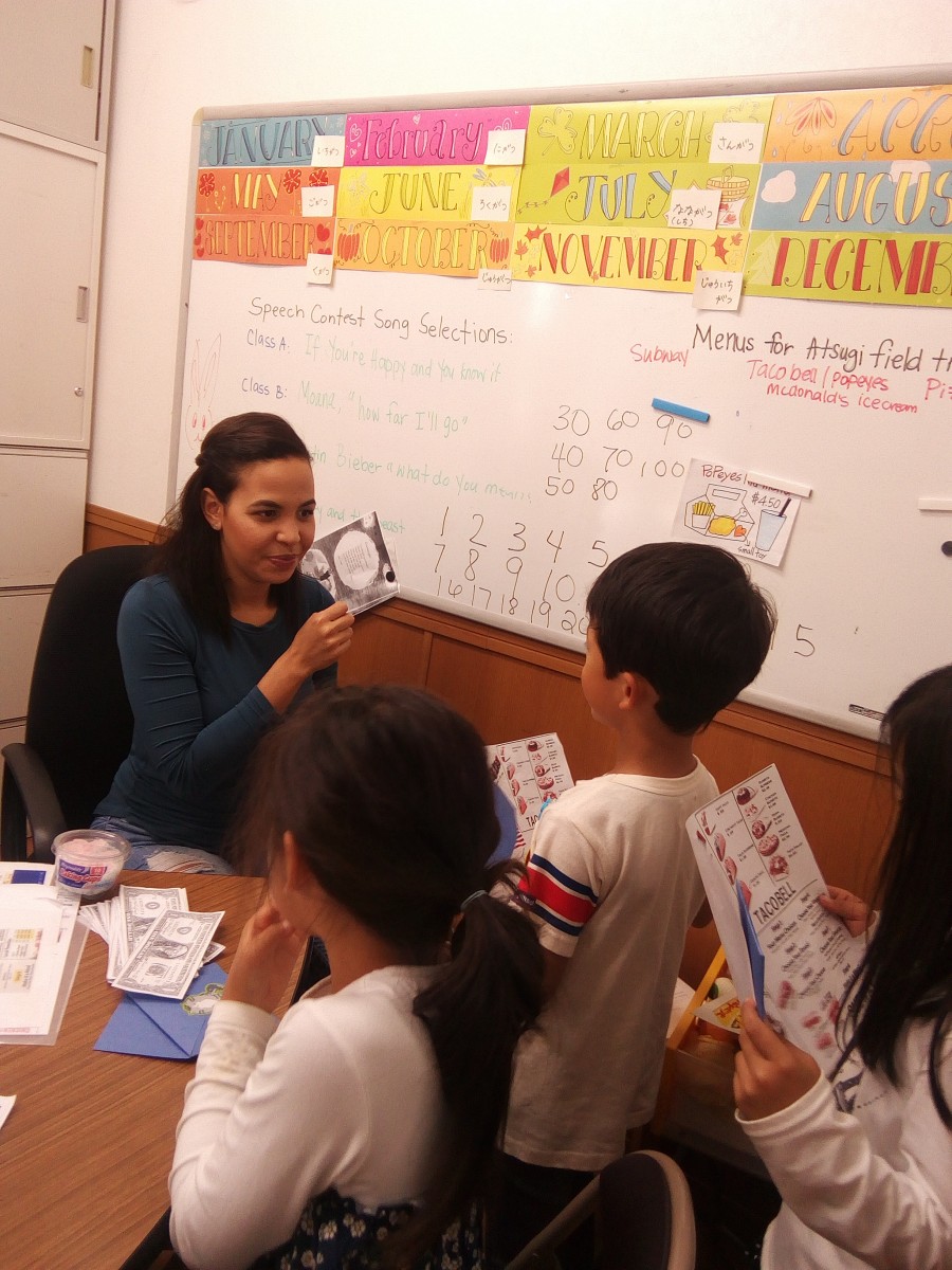 小学校中学年から高学年のクラスは英語で足し算をしながら、払うことにも挑戦しました。