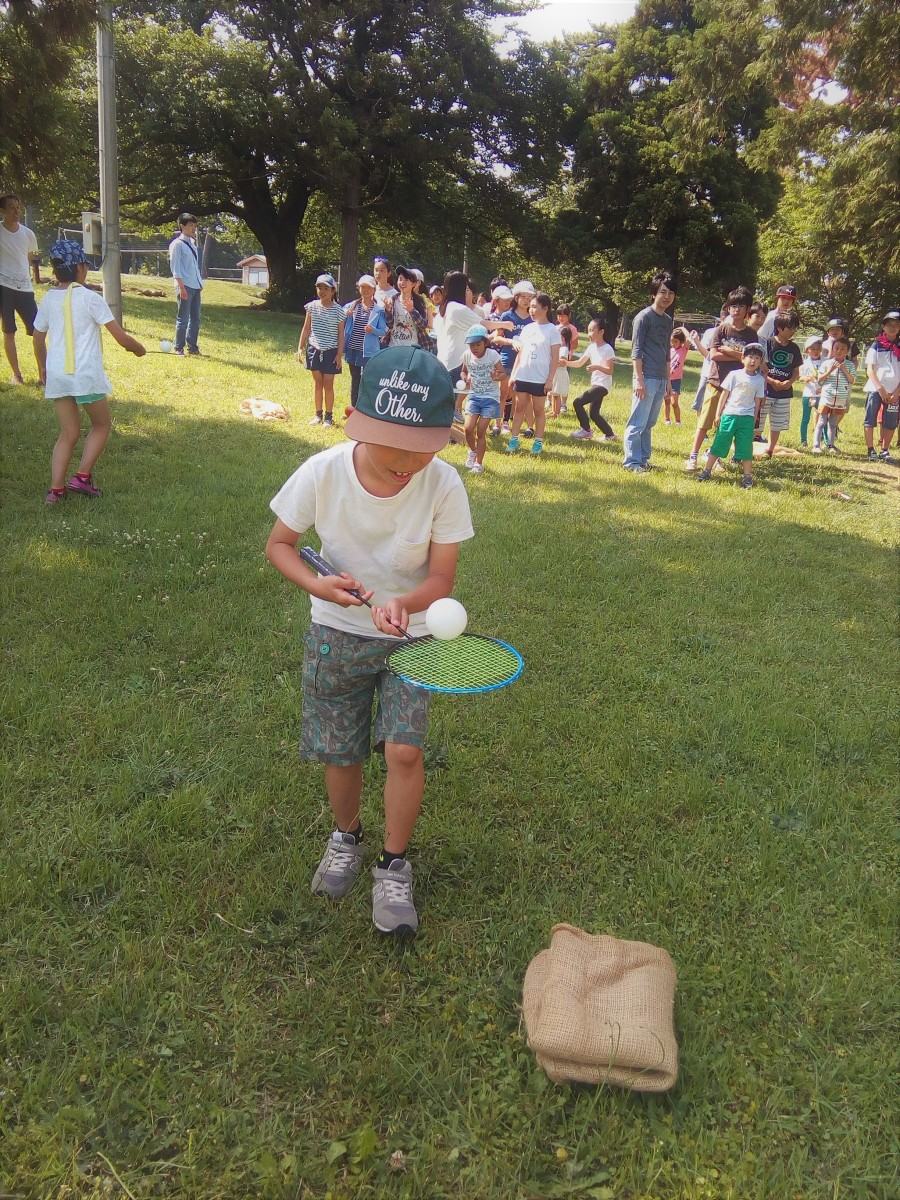 芝生の上で、鬼ごっこや縄跳び、